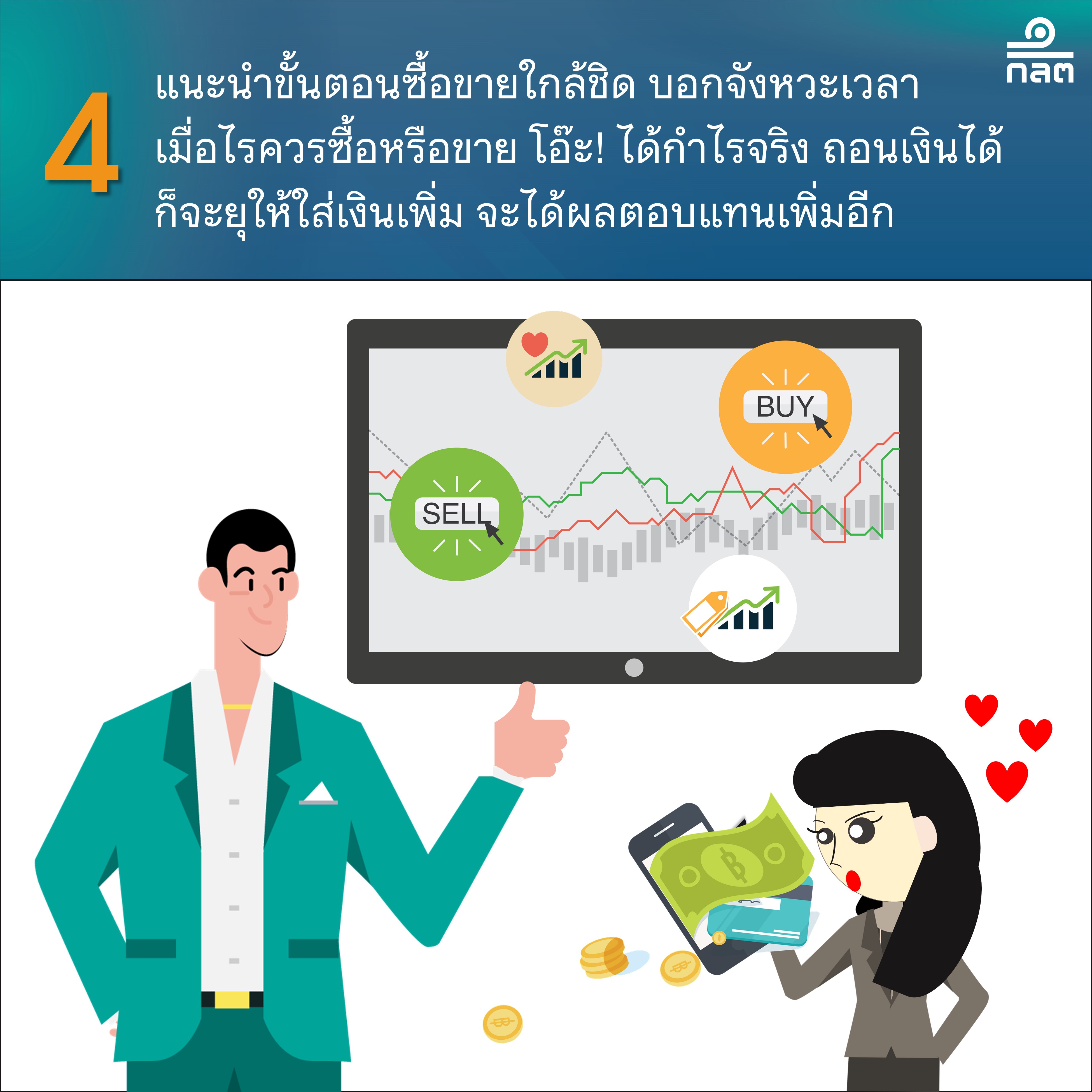 มิจฉาชีพมักจะบอกวิธีการลงทุนเป็นขั้นตอน แม้กระทั่งช่วงเวลาควรซื้อและเวลาควรขาย ซึ่งเห็นผลตอบแทนกลับมาจริง และสามารถถอนเงินออกมาได้ เพื่อสร้างความน่าเชื่อถือ พร้อมกับหว่านล้อมหรือเชียร์ให้ใส่เงินเพิ่มขึ้นเพื่อให้ได้ผลตอบแทนมากขึ้นไปอีก
