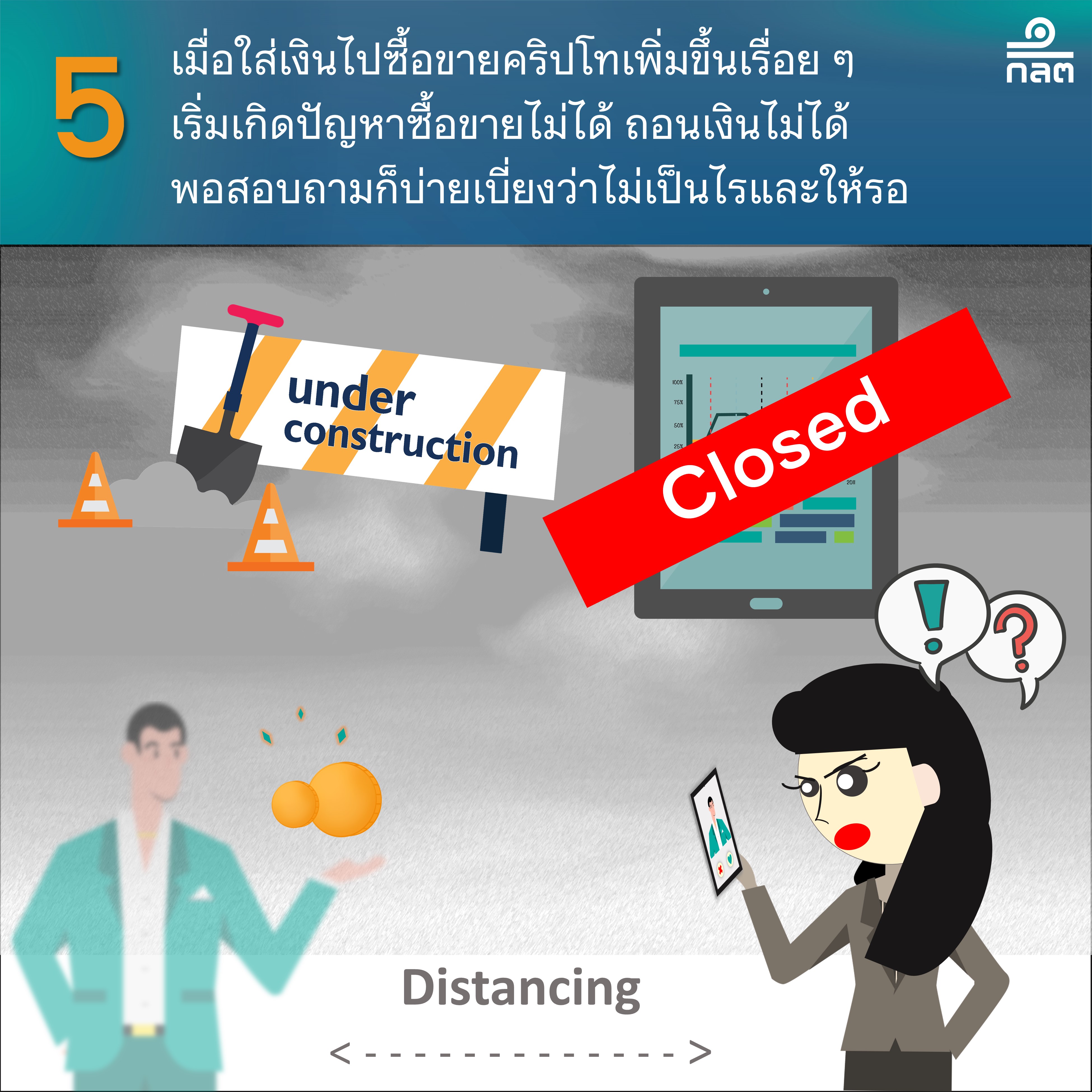 รู้ทันกลโกง 2021 เพื่อปกป้องตัวเองจากภัยกลโกง หากพบการเข้าหาในลักษณะดังกล่าว ให้ตั้งสติและฉุกคิดก่อนตัดสินใจลงทุน รวมถึงควรตรวจสอบข้อมูลอย่างรอบด้าน ซึ่งหากเป็นการชักชวนให้ซื้อขายคริปโทสามารถตรวจสอบรายชื่อผู้ประกอบธุรกิจสินทรัพย์ดิจิทัลที่ได้รับอนุญาต ได้ทางเว็บไซต์สำนักงาน ก.ล.ต. www.sec.or.th/digitalasset หรือทางแอปพลิเคชัน SEC Check First
